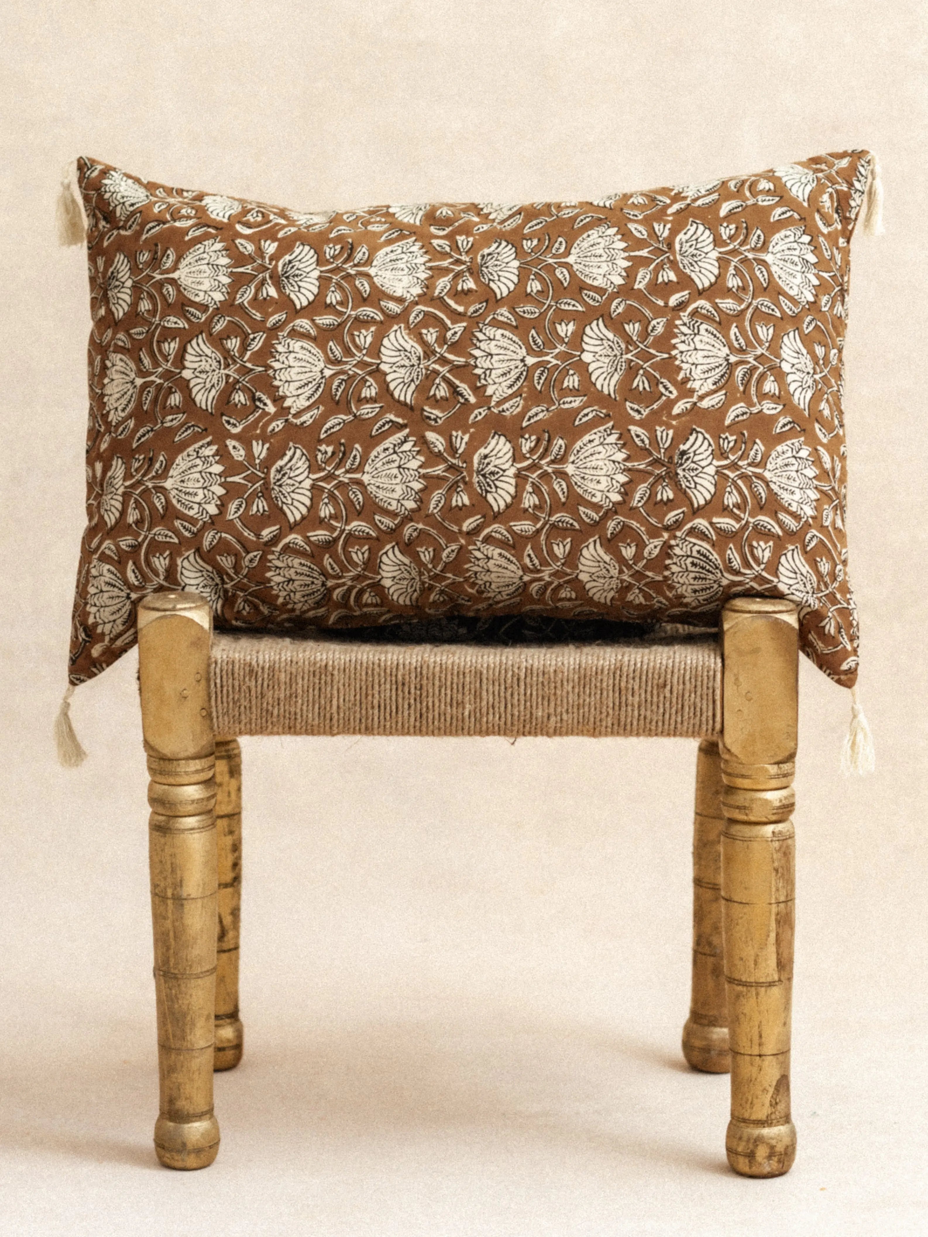 La Housse de coussin Lotus café incarne l'élégance contemporaine avec son motif blockprint traditionnel revisité de manière graphique. Cette création artisanale en coloris café révèle une approche créative unique où l'artisanat indien rencontre le design moderne. Chaque détail a été pensé avec soin, traduisant une vision artistique qui transcende les styles classiques.