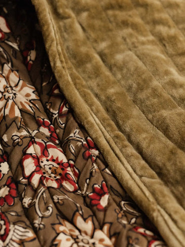 Ce plaid a une face en velours et une face en Block Print imprimée à la main. L’intérieur est rempli de ouatine pour plus de confort. Surpiqué à la main, chaque pièce est fabriquée avec soin dans notre atelier à Jaipur.