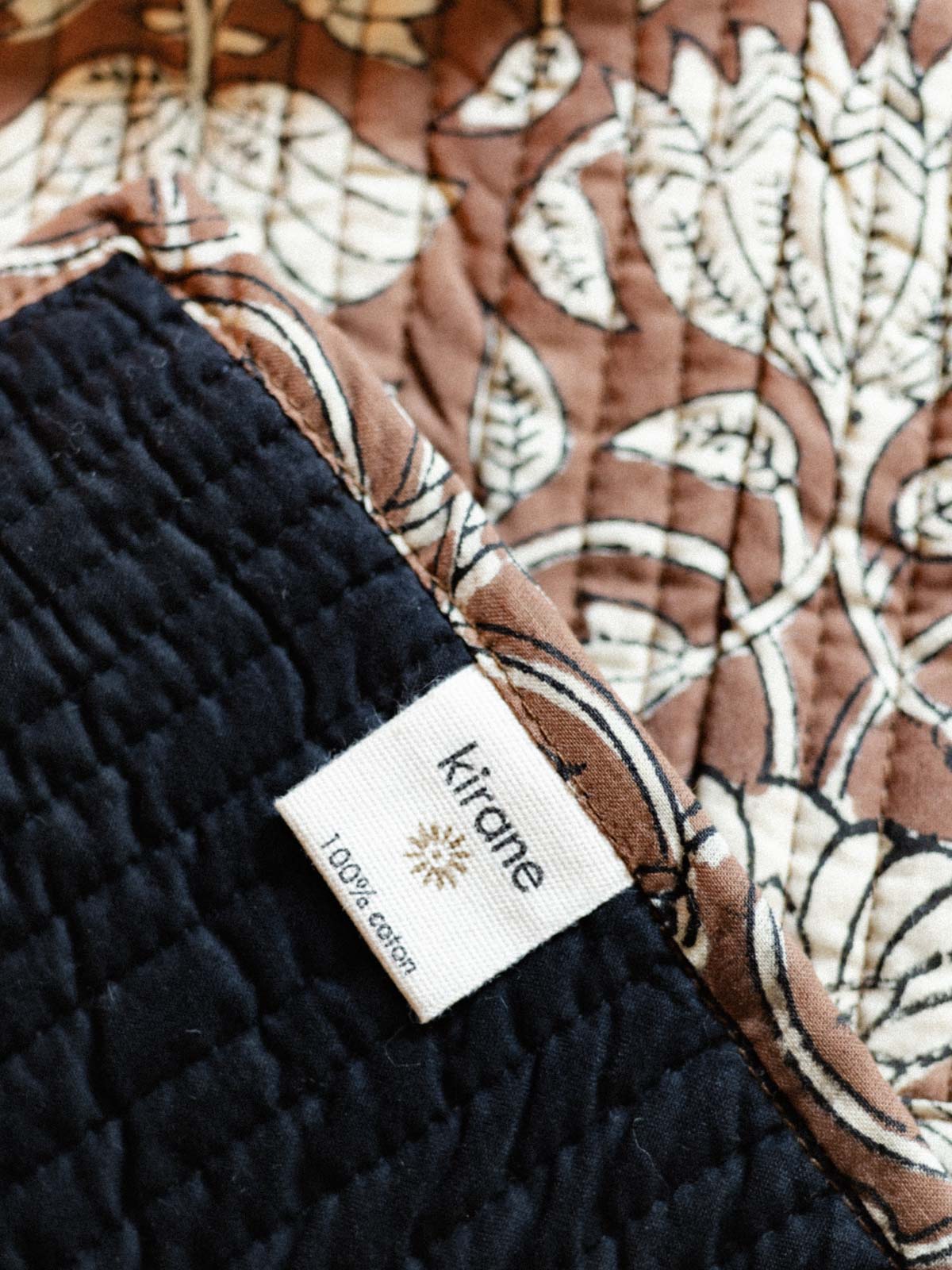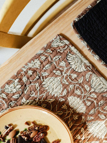 Set de table tissu surpiqué Lotus Café | Block print indien & surpiqûres | Design Kirane