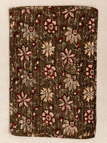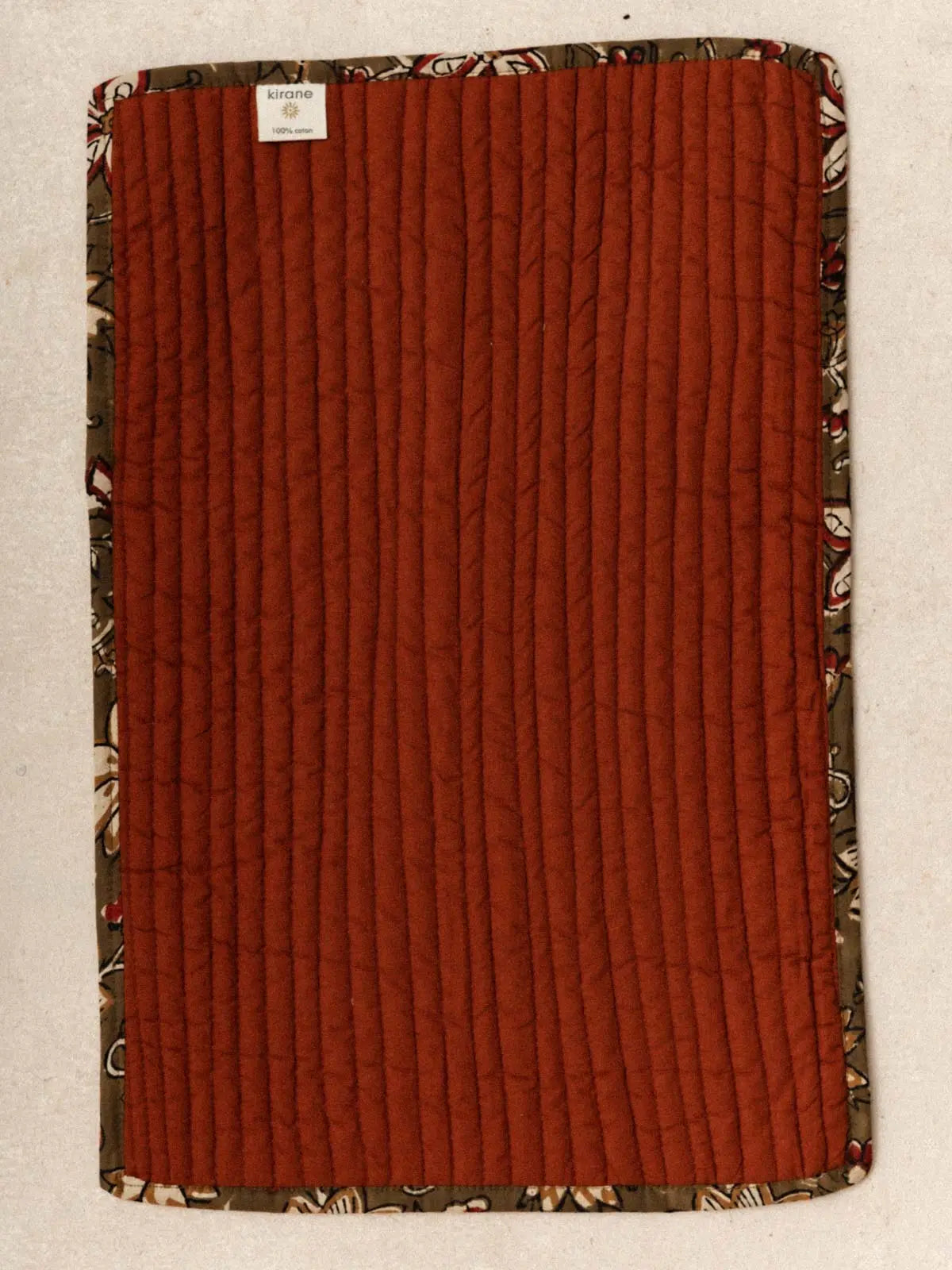 - Double face ouatinée : imprimé blockprint artisanal / coton biologique uni Terracotta