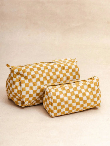 • Trousse matelassée en coton imprimé damier à la main au Blockprint