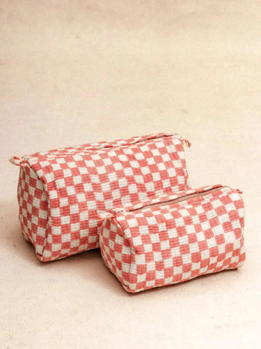 • Trousse matelassée en coton imprimé damier à la main (blockprint)