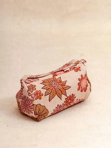- Trousse matelassée en coton imprimé Fleuri à la main au Blockprint