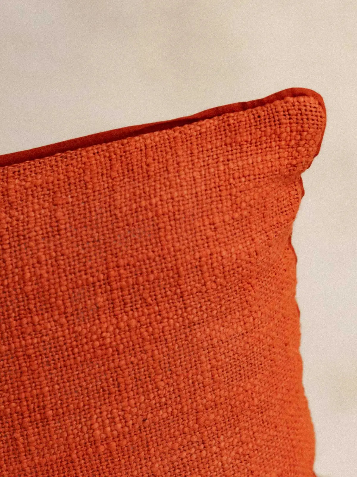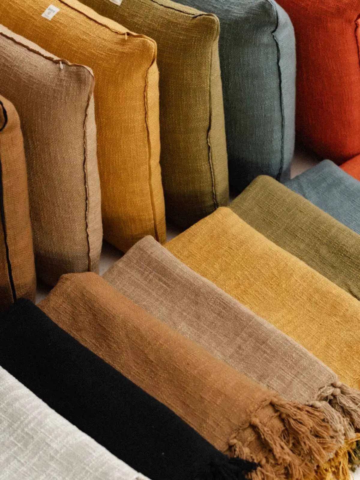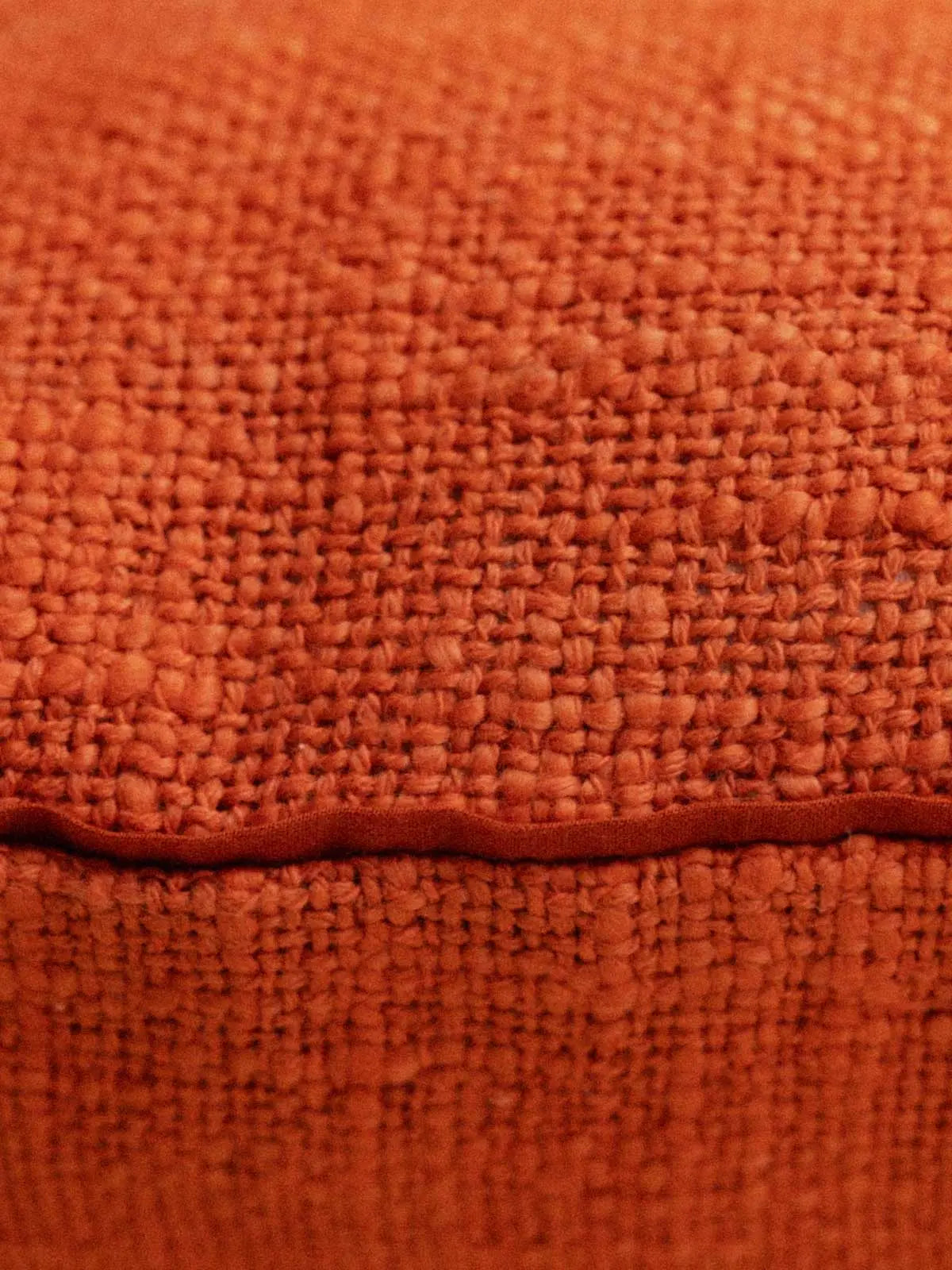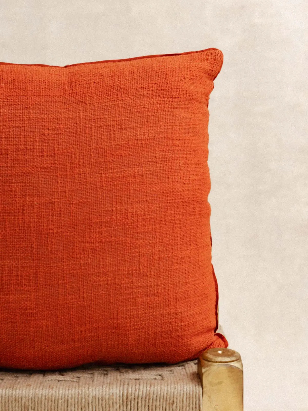 Khadi, ein Symbol indischer Handwerkskunst, verwandelt diesen Kissenbezug in ein authentisches und ethisches Dekorationsstück. Seine leicht unregelmäßige Textur und die luftige Webart erzeugen einen natürlichen Effekt, der alle Innenräume aufwertet, von den modernsten bis zu den traditionellsten. Die handwerkliche Fertigung garantiert ein natürliches und langlebiges Material für ein zeitloses und pflegeleichtes Design.