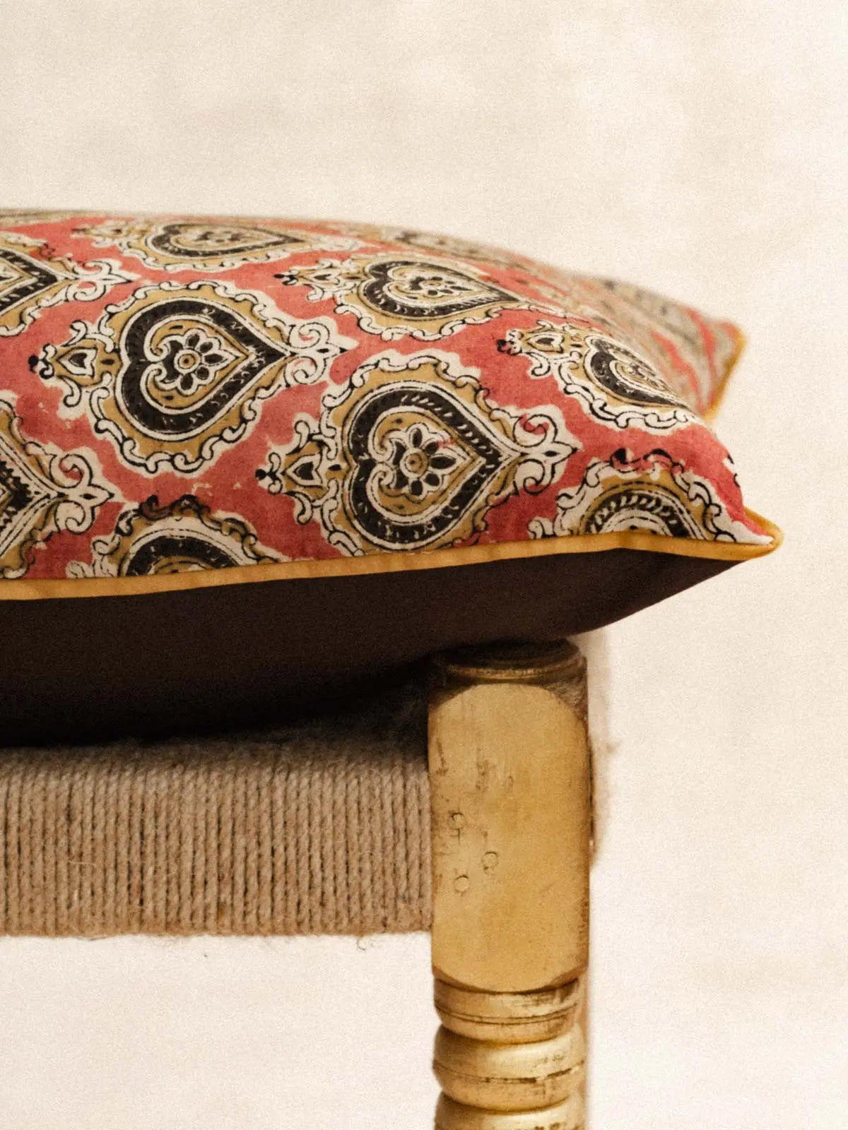 Dieses Lotuskissen ist perfekt für anspruchsvolle Inneneinrichtungen und erzählt die Geschichte einer neu aufgelegten Blockdrucktradition. Ein dekoratives Accessoire, das Authentizität und Modernität harmonisch vereint und eine warme und inspirierende Atmosphäre in Ihrem Wohnzimmer schafft.