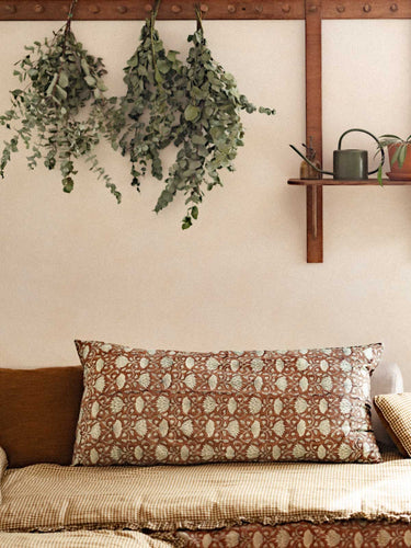 Ideal as a headboard, floor cushion or bench backrest, it combines comfort and style for a warm and refined decoration. Its fabric, hand-printed using the traditional block print technique, offers unique and authentic patterns, perfect for a bohemian or modern atmosphere.
