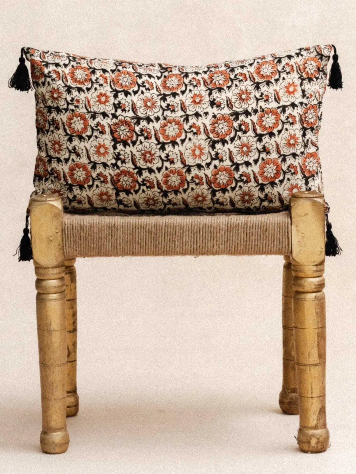 100% handcrafted cotton, printed using the age-old technique of Block Print. Each pattern tells a story of Indian tradition, crafted with meticulous precision by expert artisans. Delicately finished with cotton pompoms, entirely handmade. A living textile that embodies India's creative heritage, where every detail conveys elegance, craftsmanship and cultural authenticity.