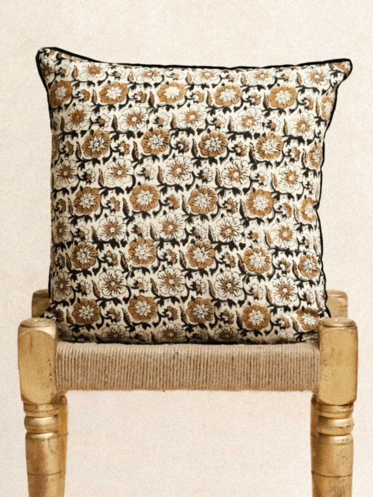 Made from cotton and hand-printed using the block-print technique, this Neiroli cushion cover revisits a traditional floral motif in a clean, contemporary version.