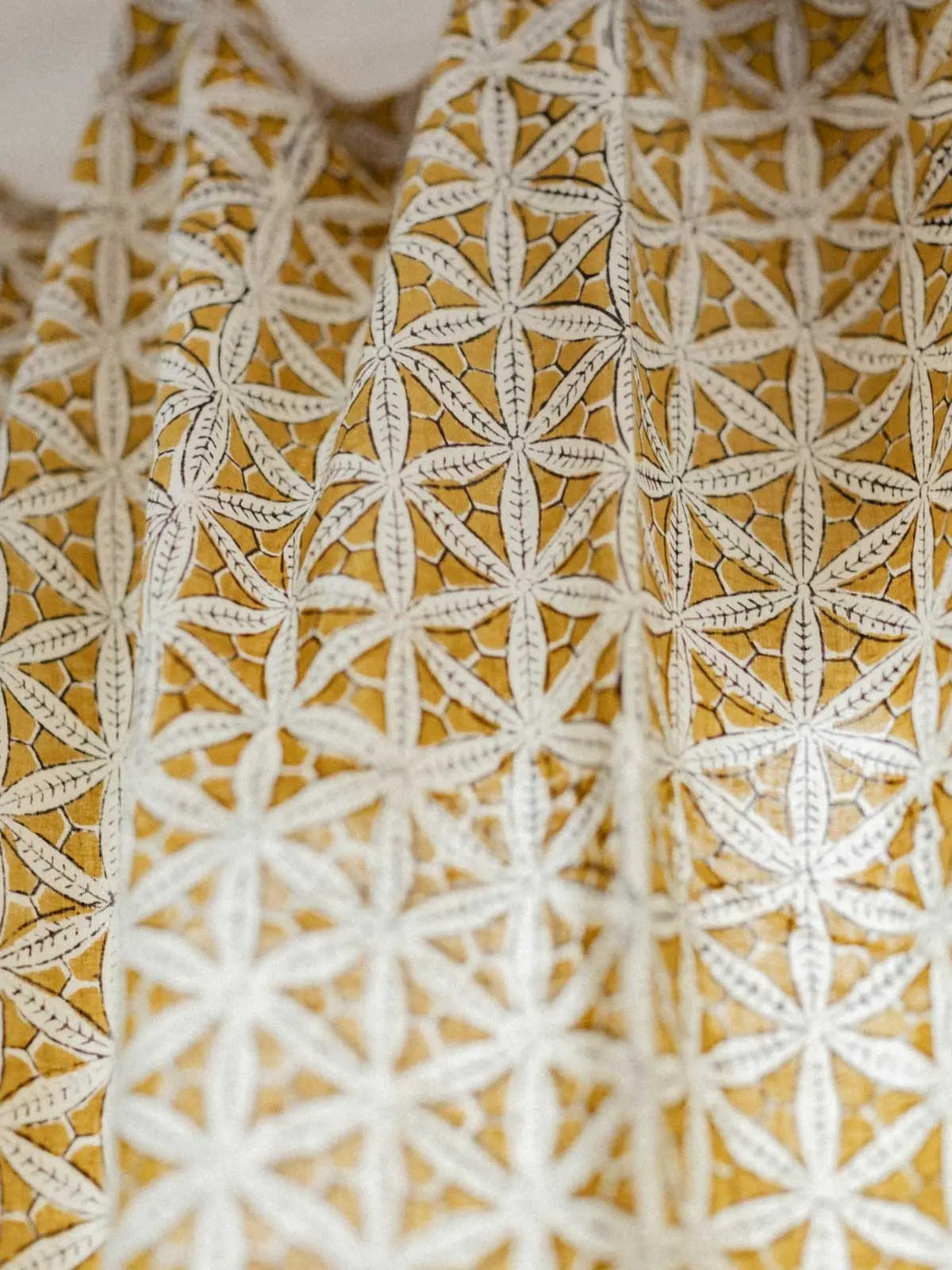 The cotton voile shades the piece with a soft, colorful light, matching the hand-printed pattern. Carefully crafted in our workshop in Jaipur.
