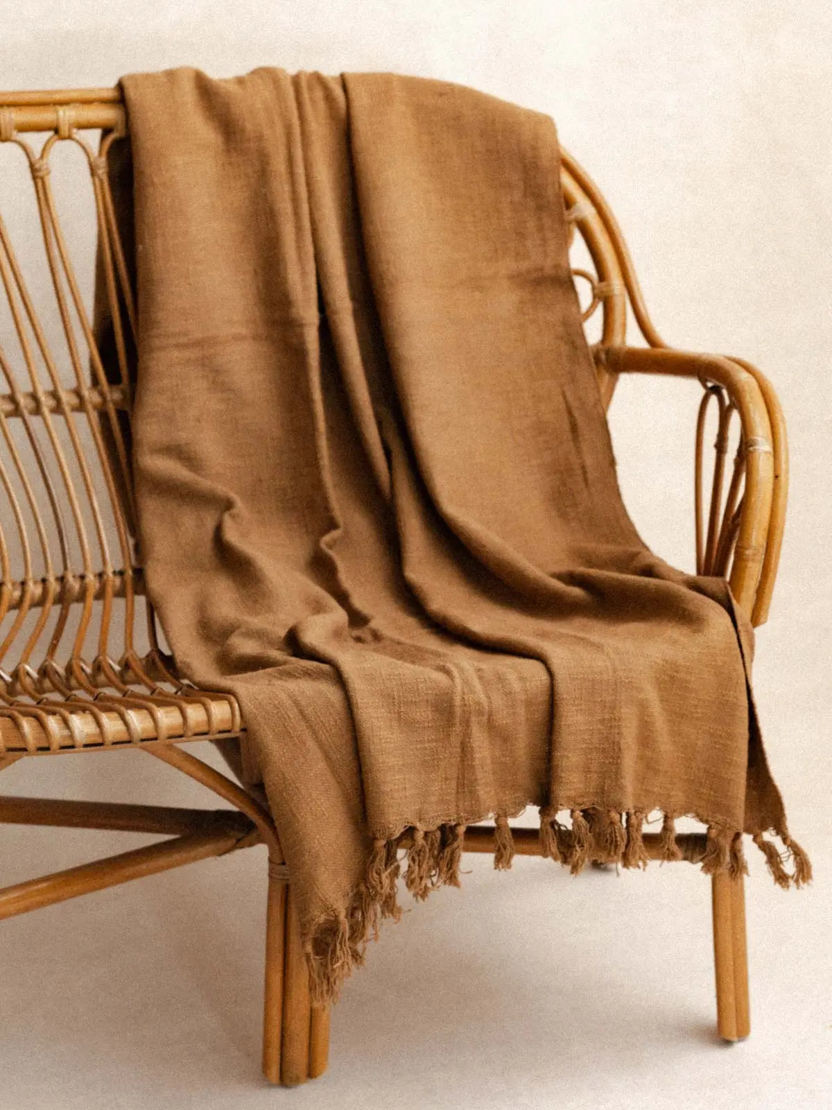 This throw blanket features a hand-printed block print on one side and a plain side. The interior is filled with batting for added softness and comfort. Carefully hand-stitched, each piece is unique, crafted in our workshop in Jaipur.
