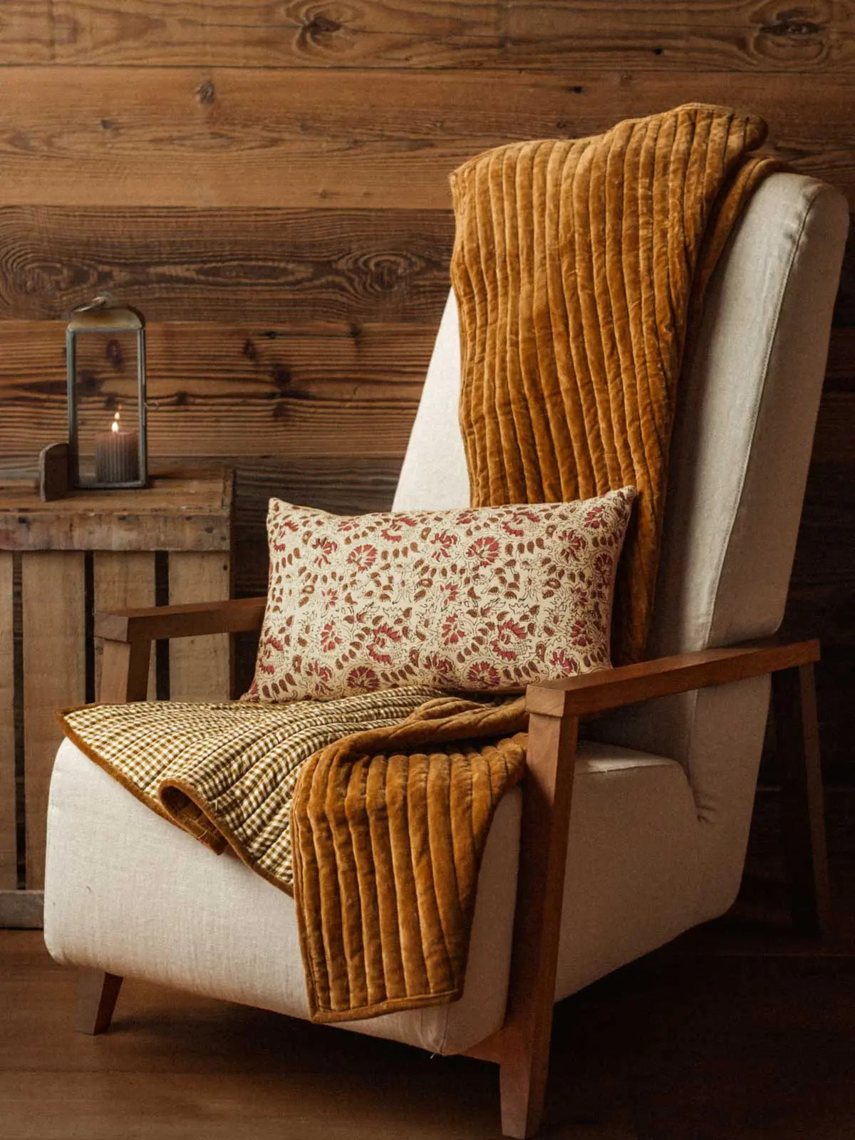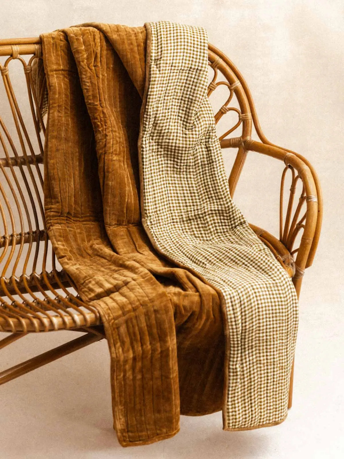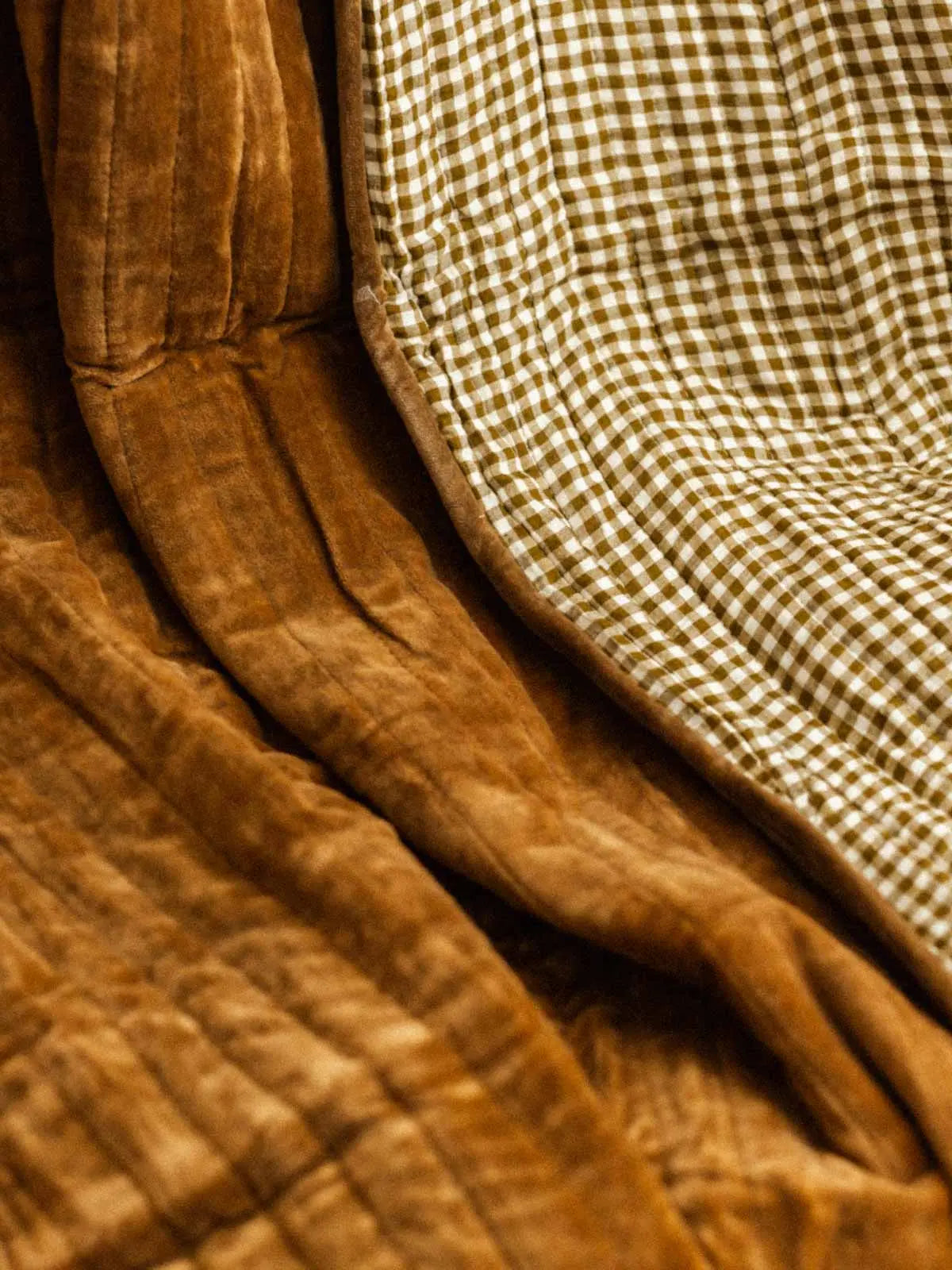 - Double-sided: ultra-soft velvet / hand-woven gingham check