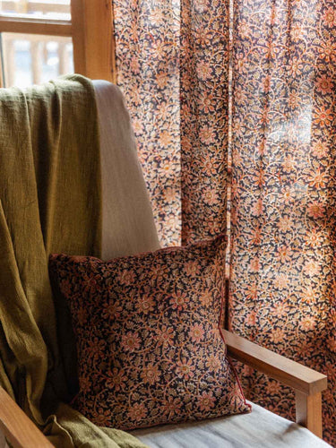 The cotton voile shades the piece with a soft, colorful light, matching the hand-printed pattern. Carefully crafted in our workshop in Jaipur.