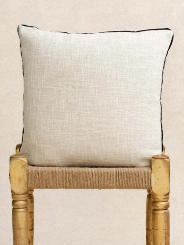 Beautiful cushion cover in Khadi cotton, a traditional material from India, spun and woven by hand. Its light and textured weave brings a natural and authentic touch to your interior. The black piping finish highlights its elegance and allows it to be harmoniously combined with our coffee gingham and our prints.