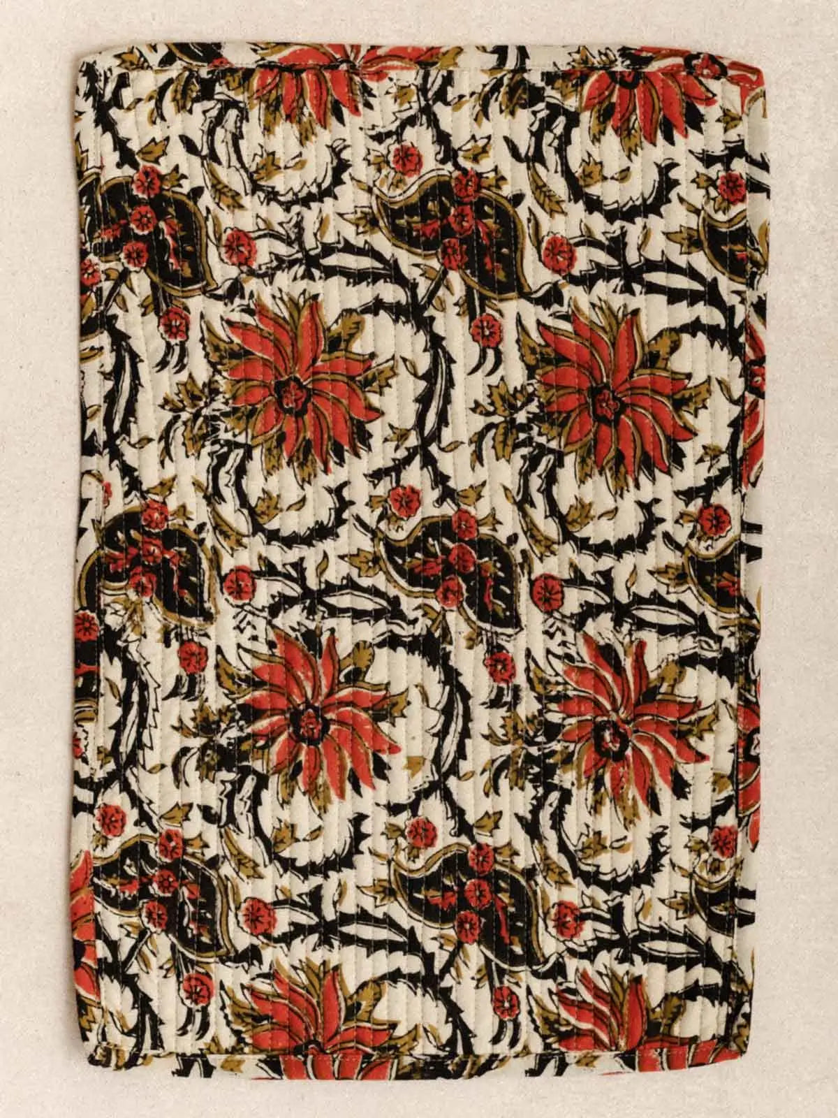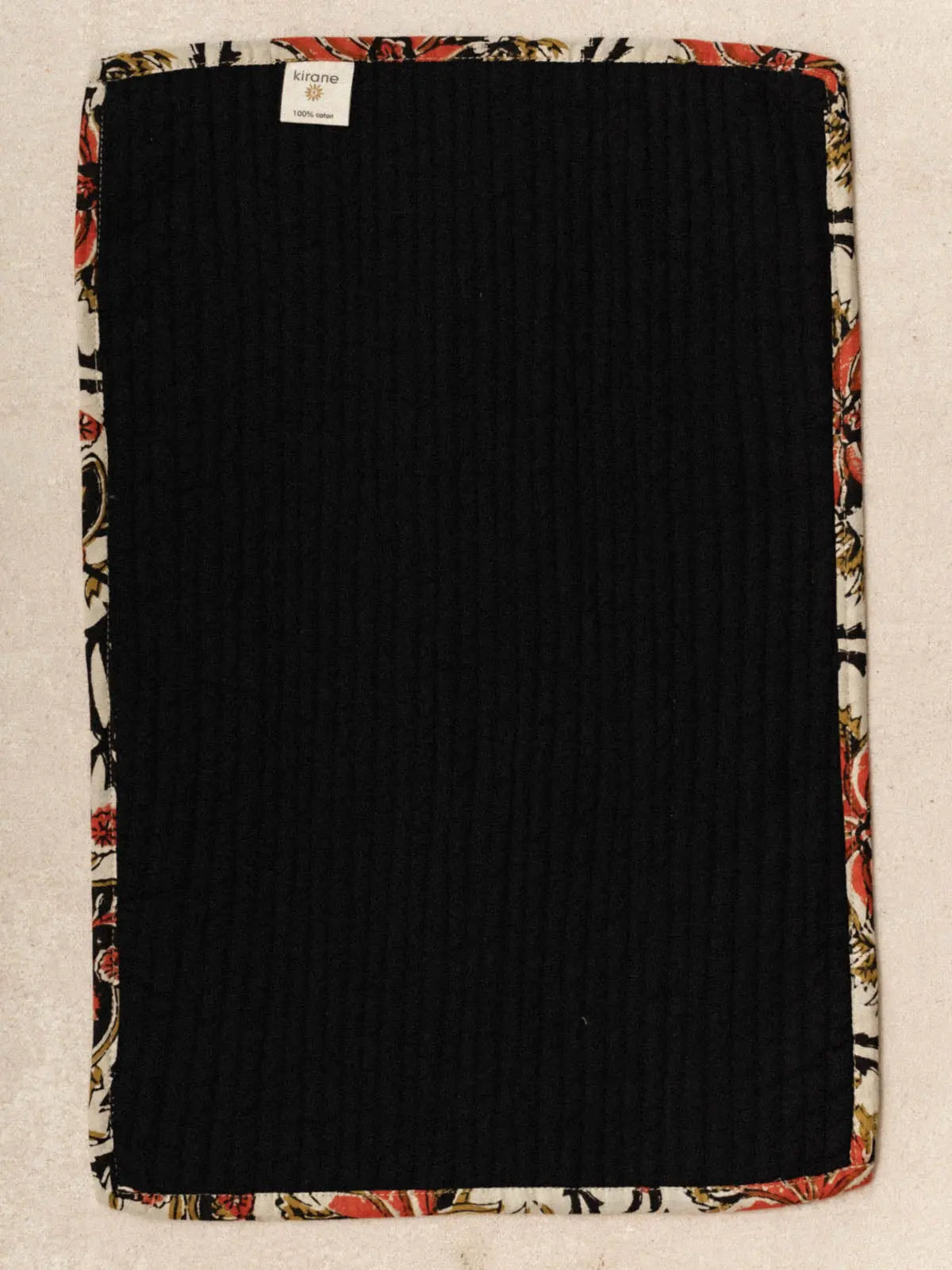 - Double face ouatinée : imprimé blockprint artisanal / coton biologique uni noir